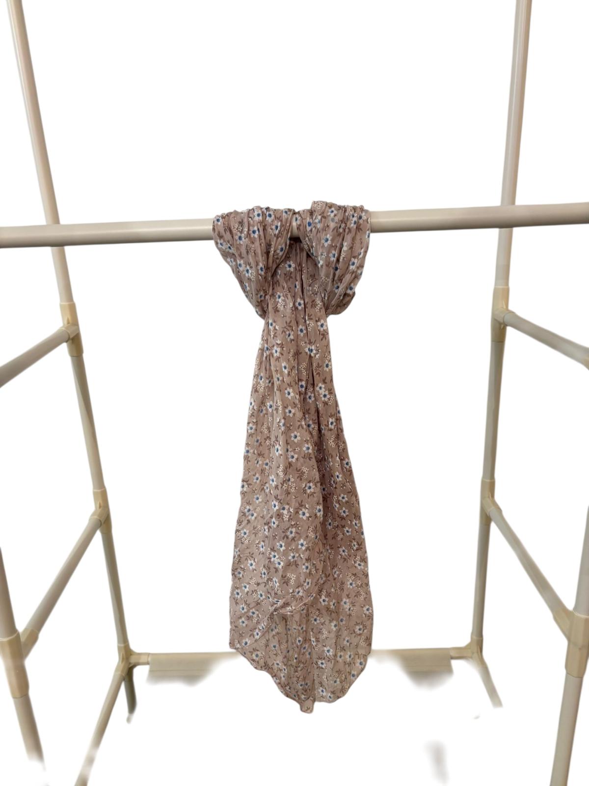 Sjaal-Katoen-Zijde-Italiaans-lichtbruin met witte bloemen