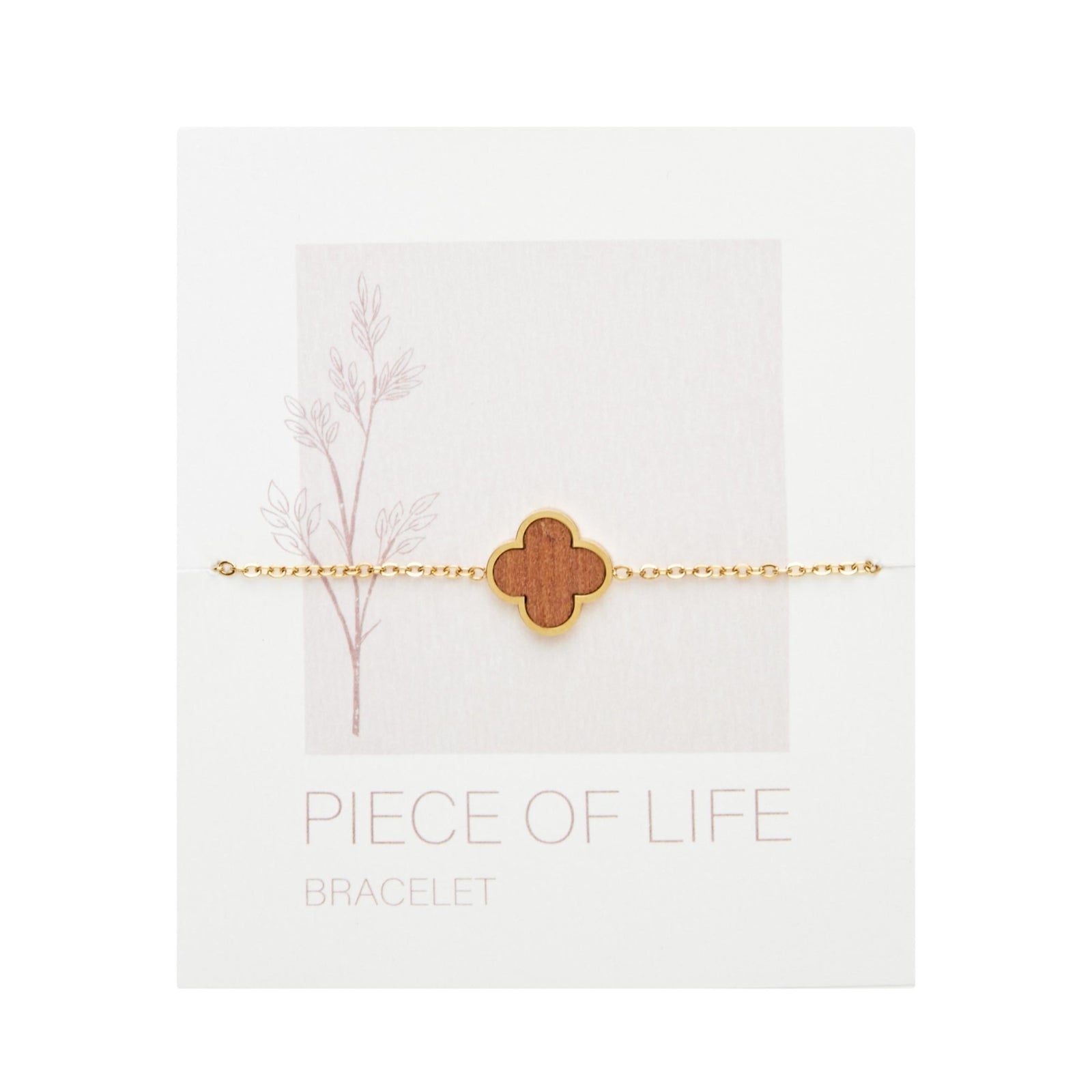 Voor de armbanden in de serie Piece of Life combineert HCA roestvrij staal, gedeeltelijk verguld of roségoud verguld, met houten elementen. Er is keuze uit 3 houten elementen: Hart, klaverblad en cirkel. Deze zijn elk gezet in roestvrij staal.