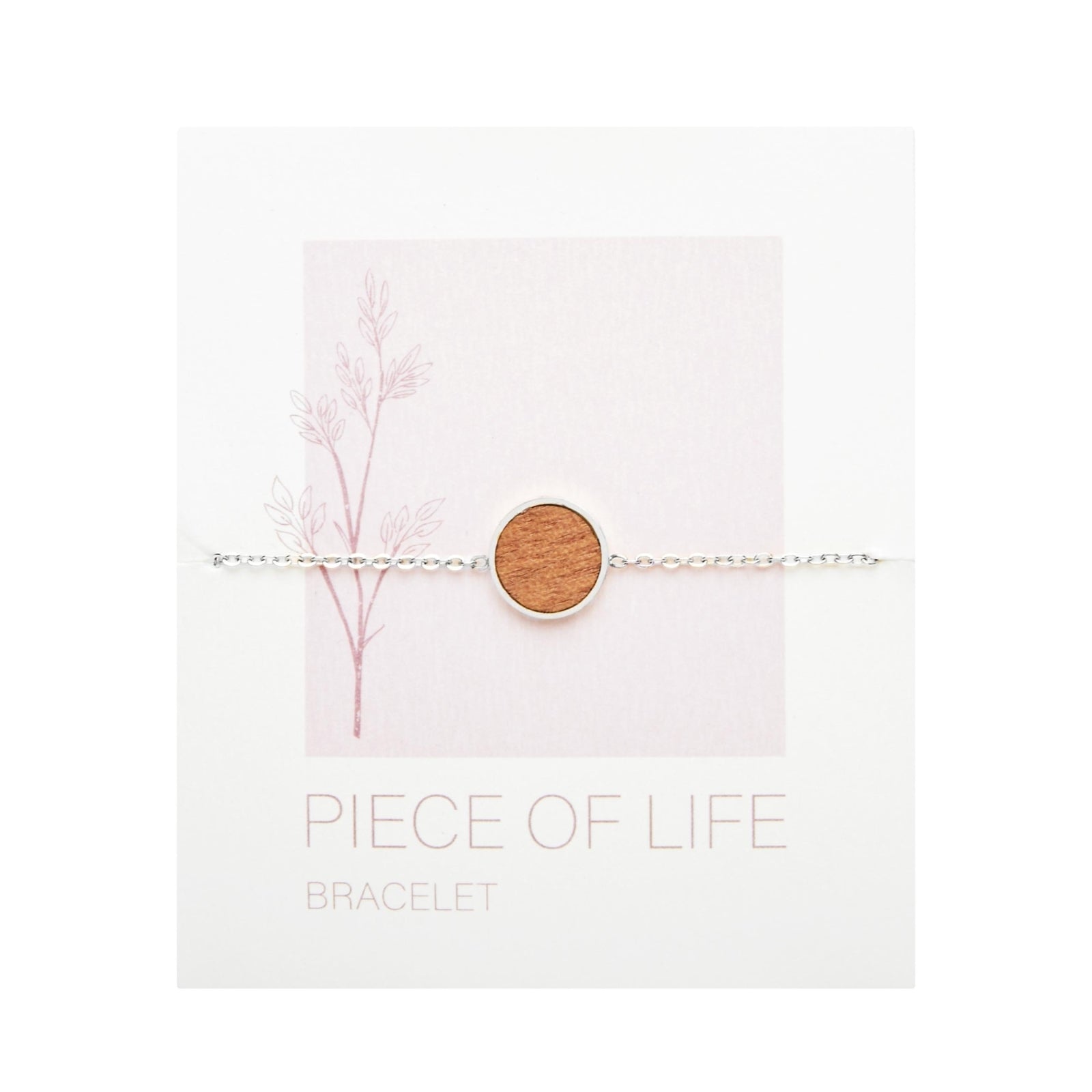 Voor de armbanden in de serie Piece of Life combineert HCA roestvrij staal, gedeeltelijk verguld of roségoud verguld, met houten elementen. Er is keuze uit 3 houten elementen: Hart, klaverblad en cirkel. Deze zijn elk gezet in roestvrij staal.