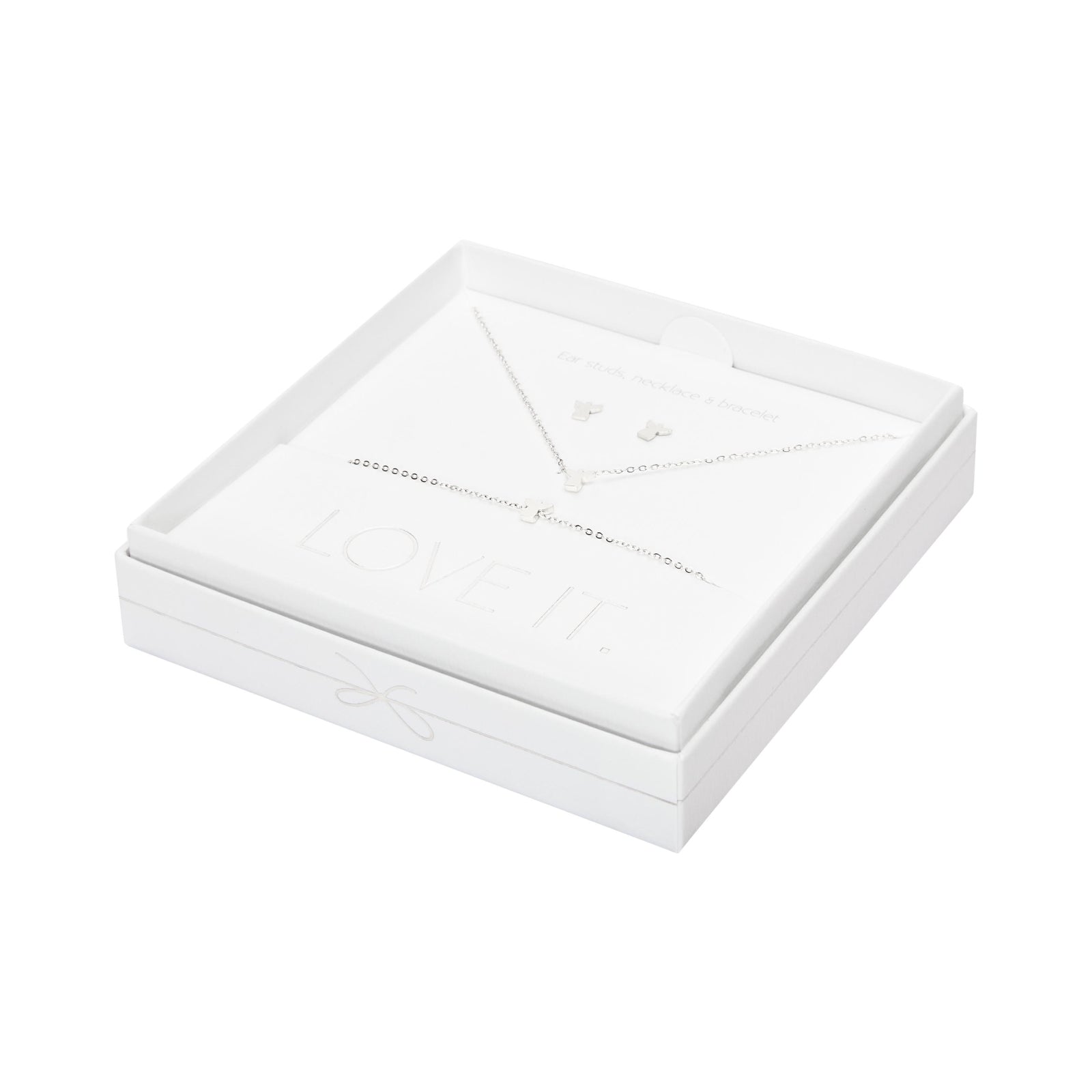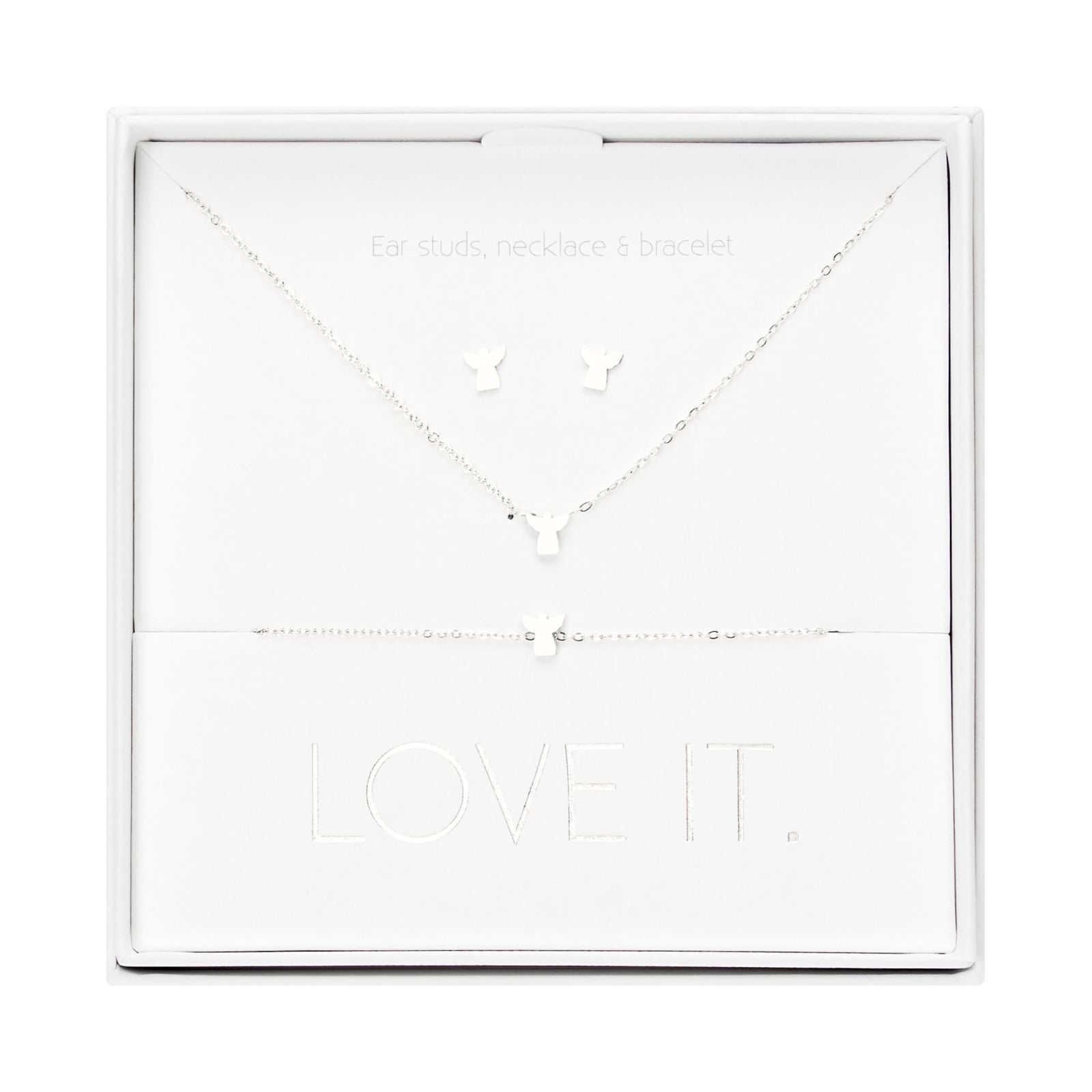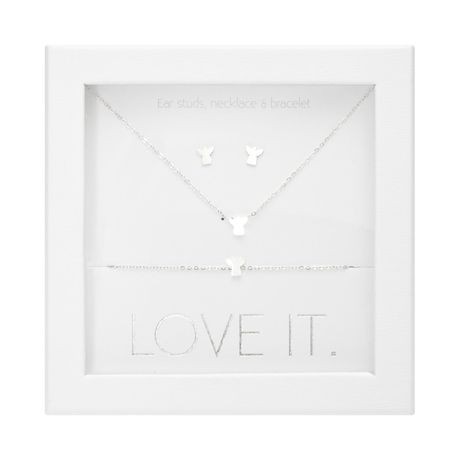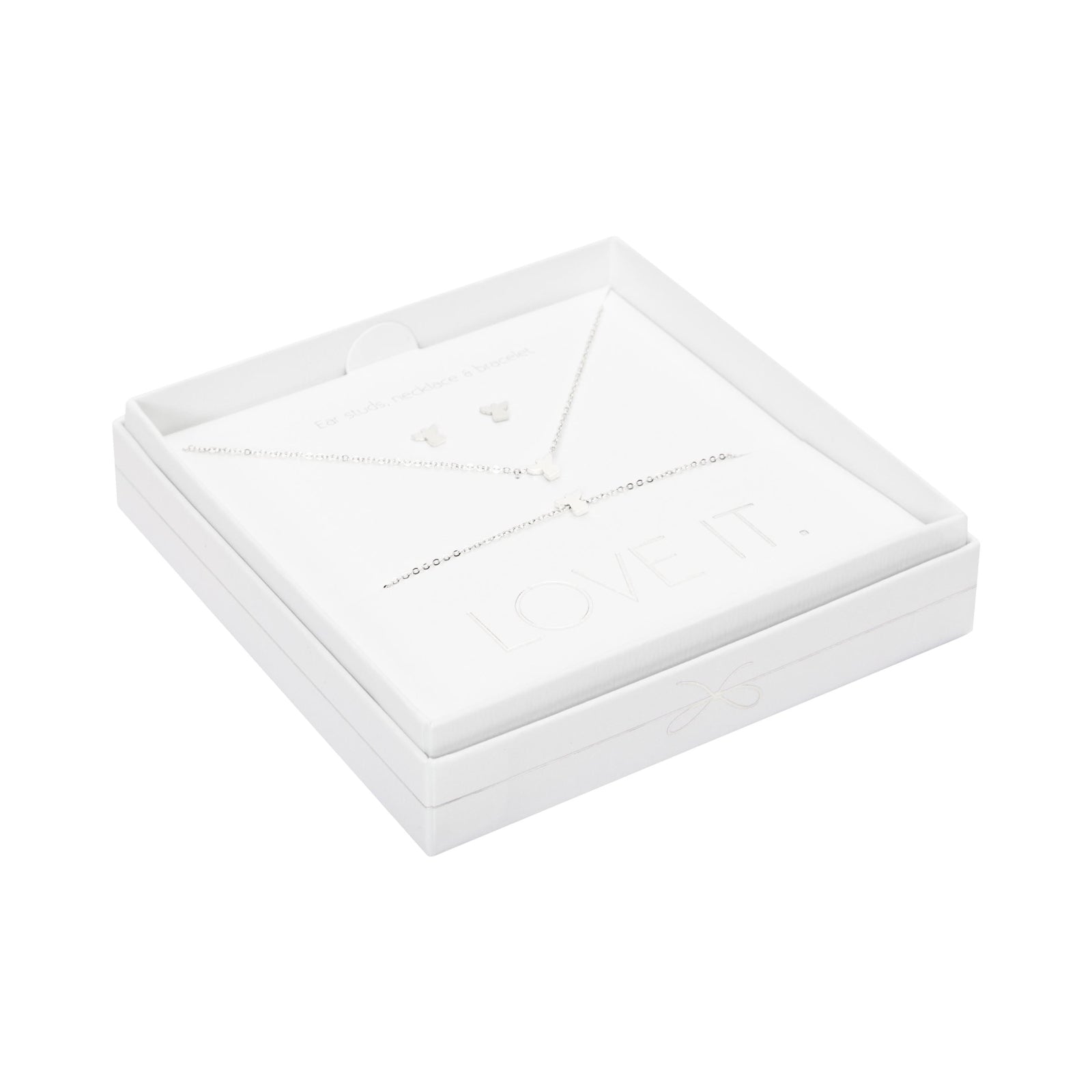 Een hoogwaardige geschenkset uit de Love it. collectie bestaande uit een armband, ketting en oorstekers. Prachtig verpakt in een elegante kartonnen geschenkdoos met venster en glanzende hot foil-stempel.