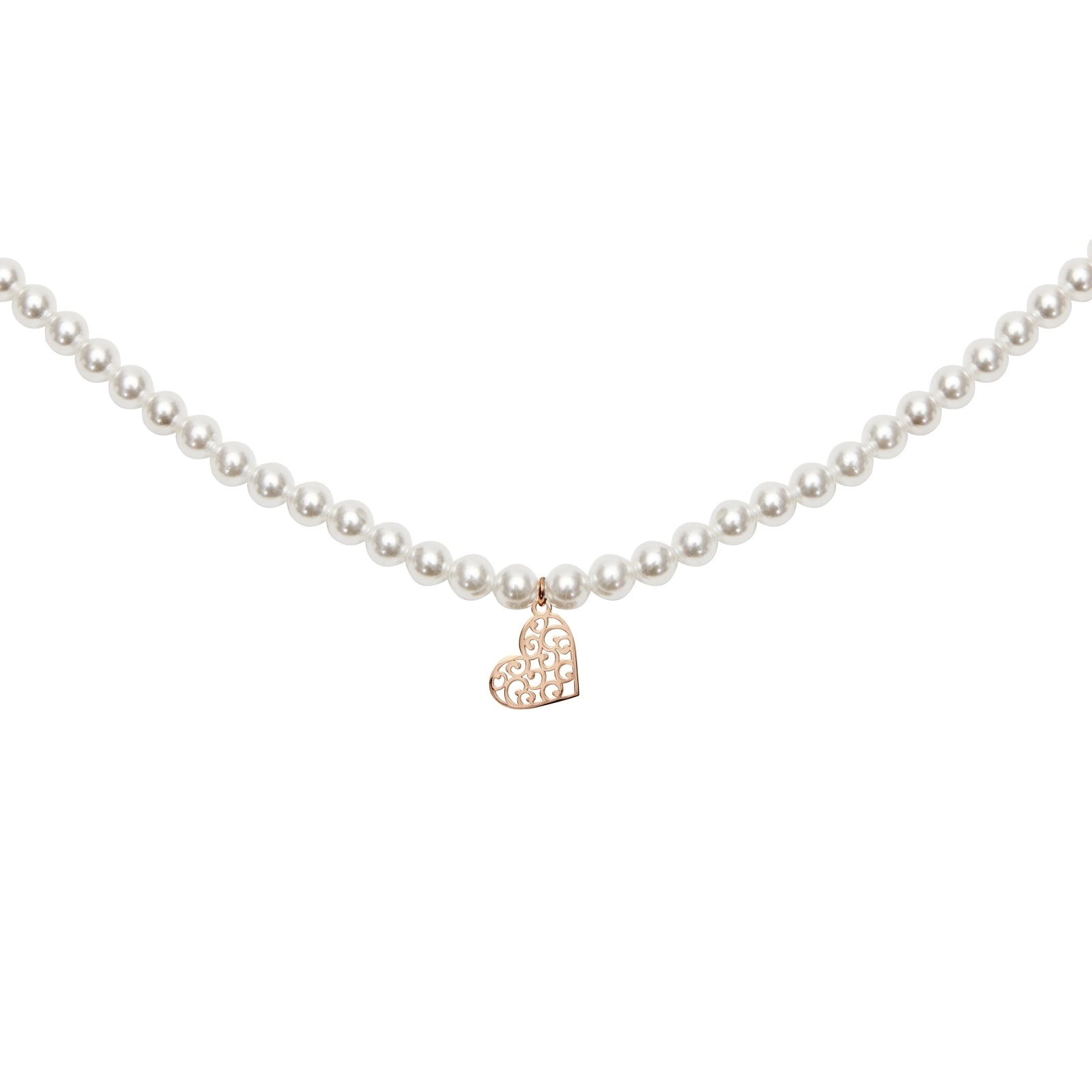Prachtige ketting met parels en het hartsymbool. De ketting heeft een verlengkettinkje van ca. 5 cm en is daardoor variabel in lengte.