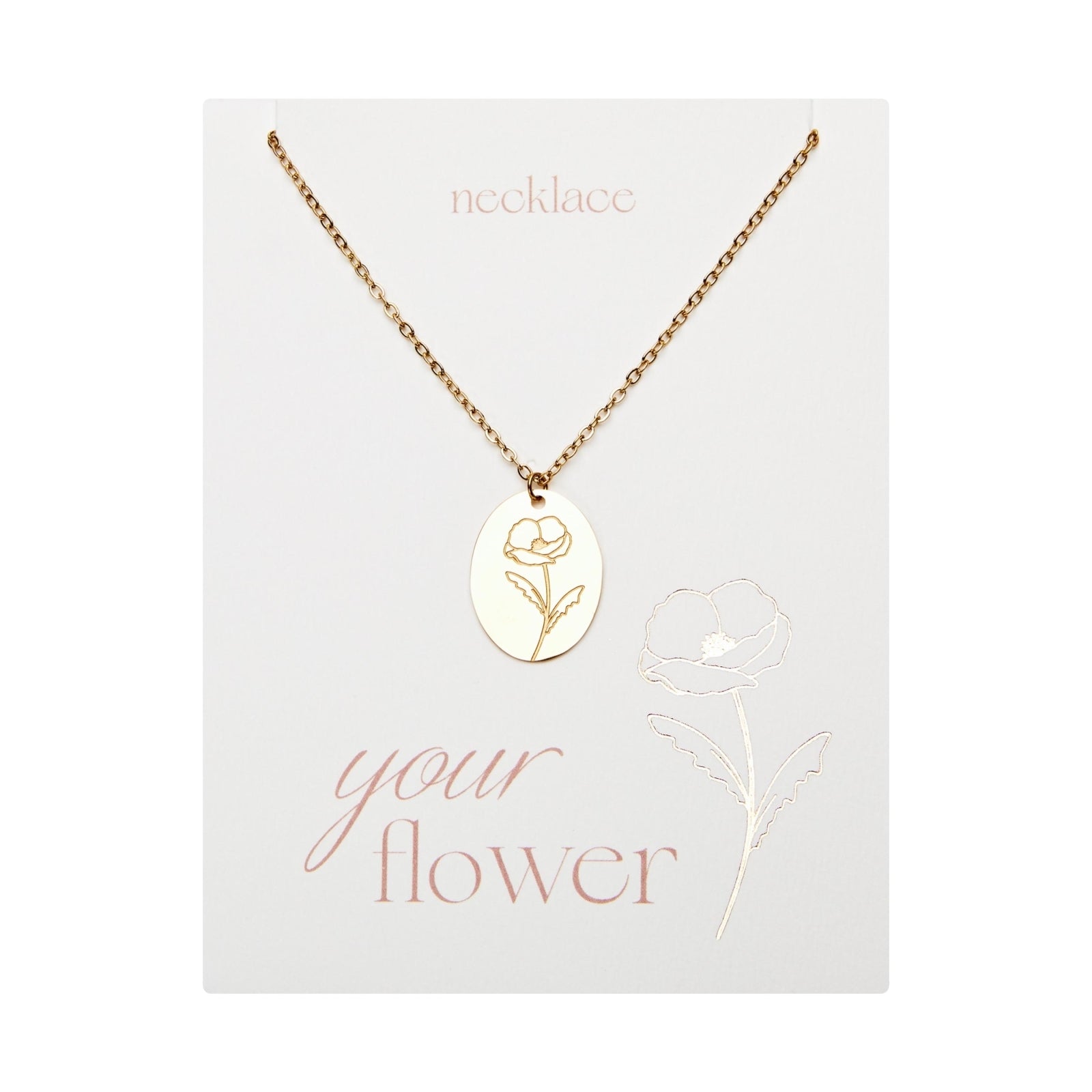 De collectie Your Flower bestaat uit kettingen en armbanden, elk gegraveerd met een geboortebloem. Alle sieraden zijn gemaakt van roestvrij staal en 6 geboortebloemen zijn ook verguld. Op de achterkant van elke ketting staat de naam van de bloem in het Engels gegraveerd. Er zijn armbanden die bij de kettingen passen.