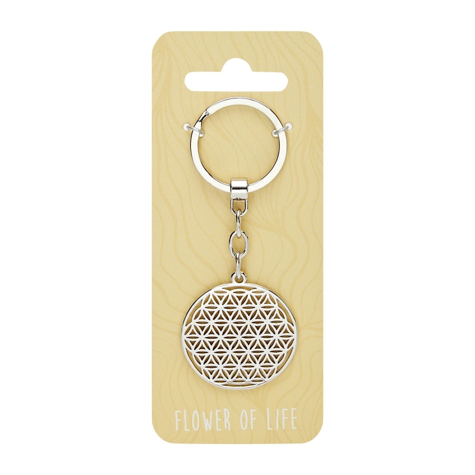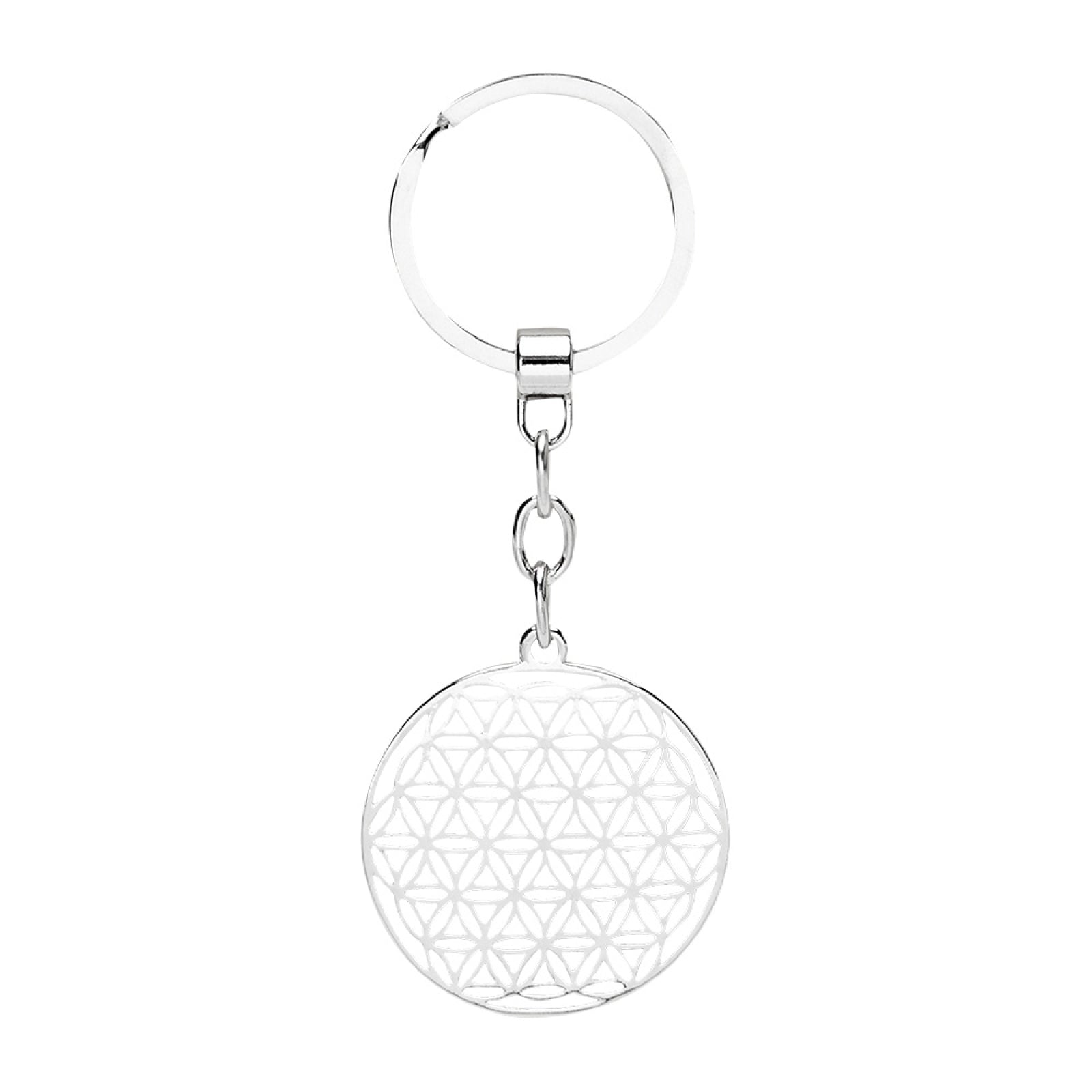 Unieke sleutelhanger met decoratieve hanger met het symbool van een Levensbloem.