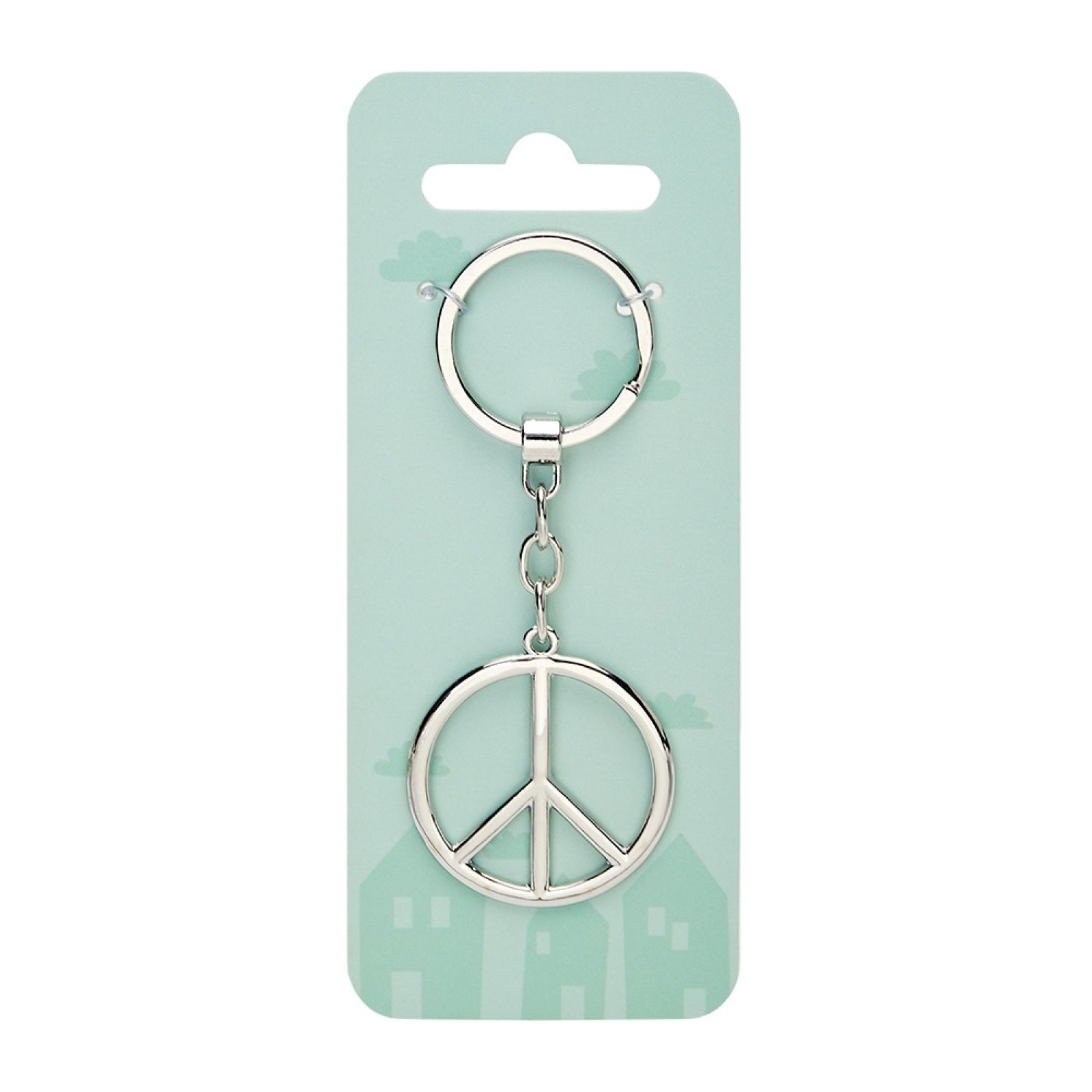 Unieke sleutelhanger met decoratieve hanger met het peace symbool.