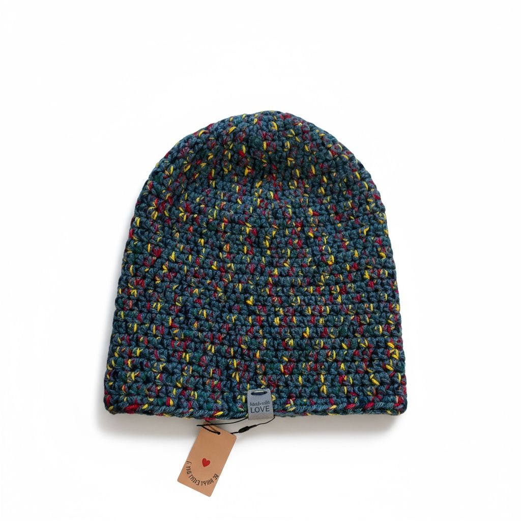 Gemêleerde marineblauwe beanie, 100% handgemaakt in Europa
