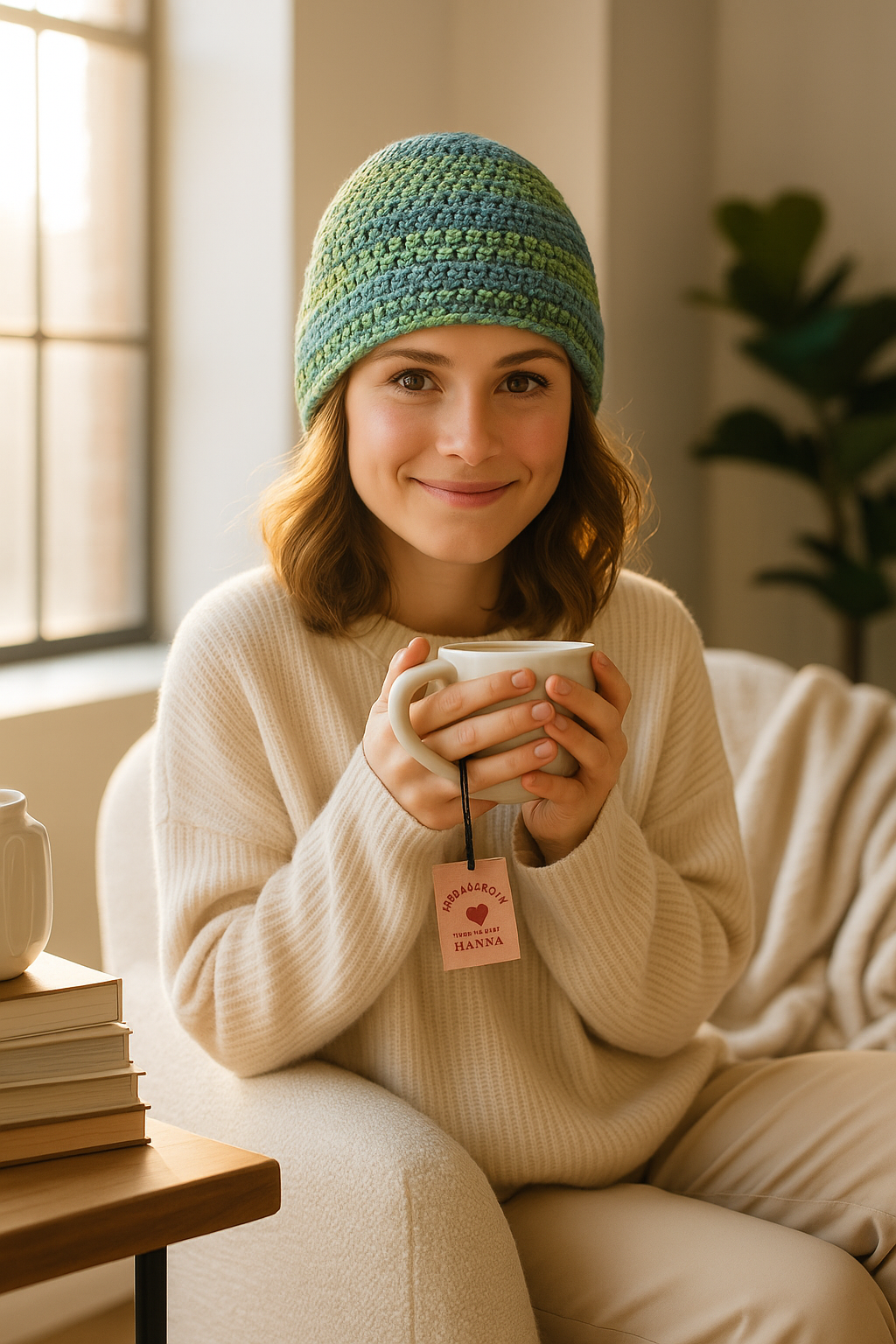 Gemêleerde blauw met groene beanie, 100% handgemaakt in Europa