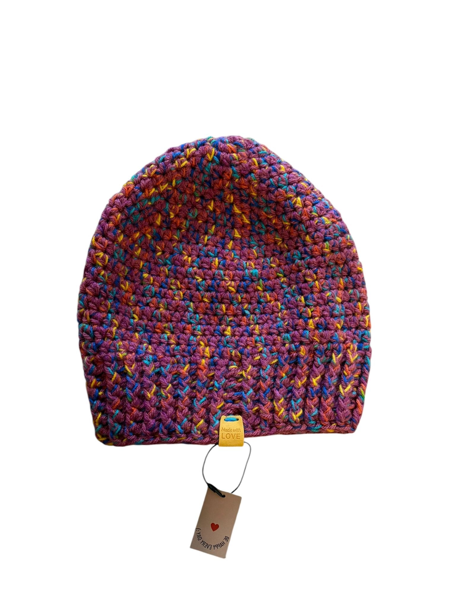 Gemêleerde paars/roze muts, 100% handgemaakt in Europa