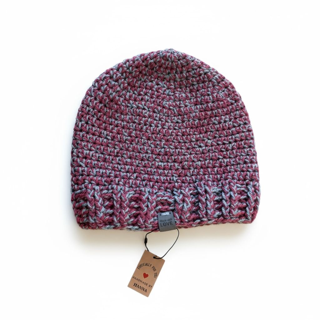 Gemêleerde paarse muts, 100% handgemaakt in Europa