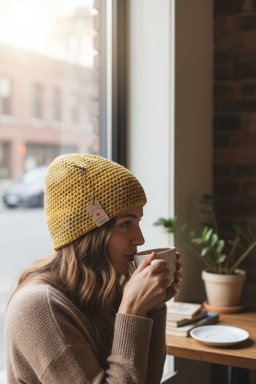 Gemêleerde gele muts, 100% handgemaakt in Europa