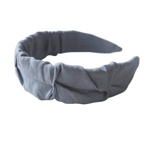 Lichtblauwe linnen hoofdband met ruches HANDGEMAAKT