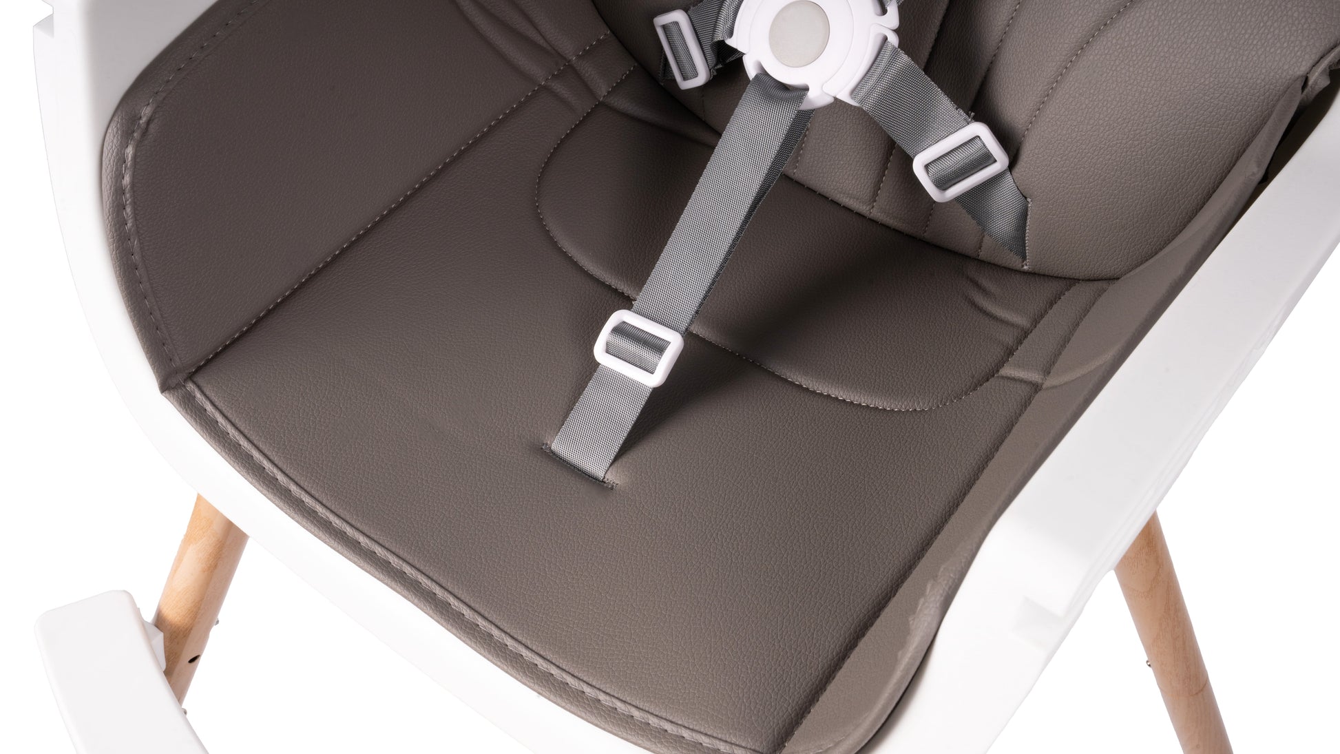 De stoel is uitgerust met 5-punts veiligheidsgordels met een wig tussen de benen, waardoor het kind niet per ongeluk kan wegglijden.