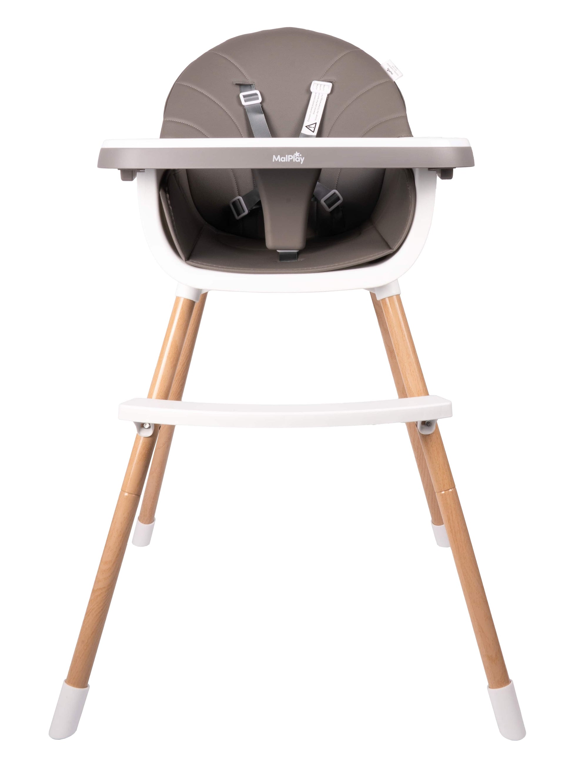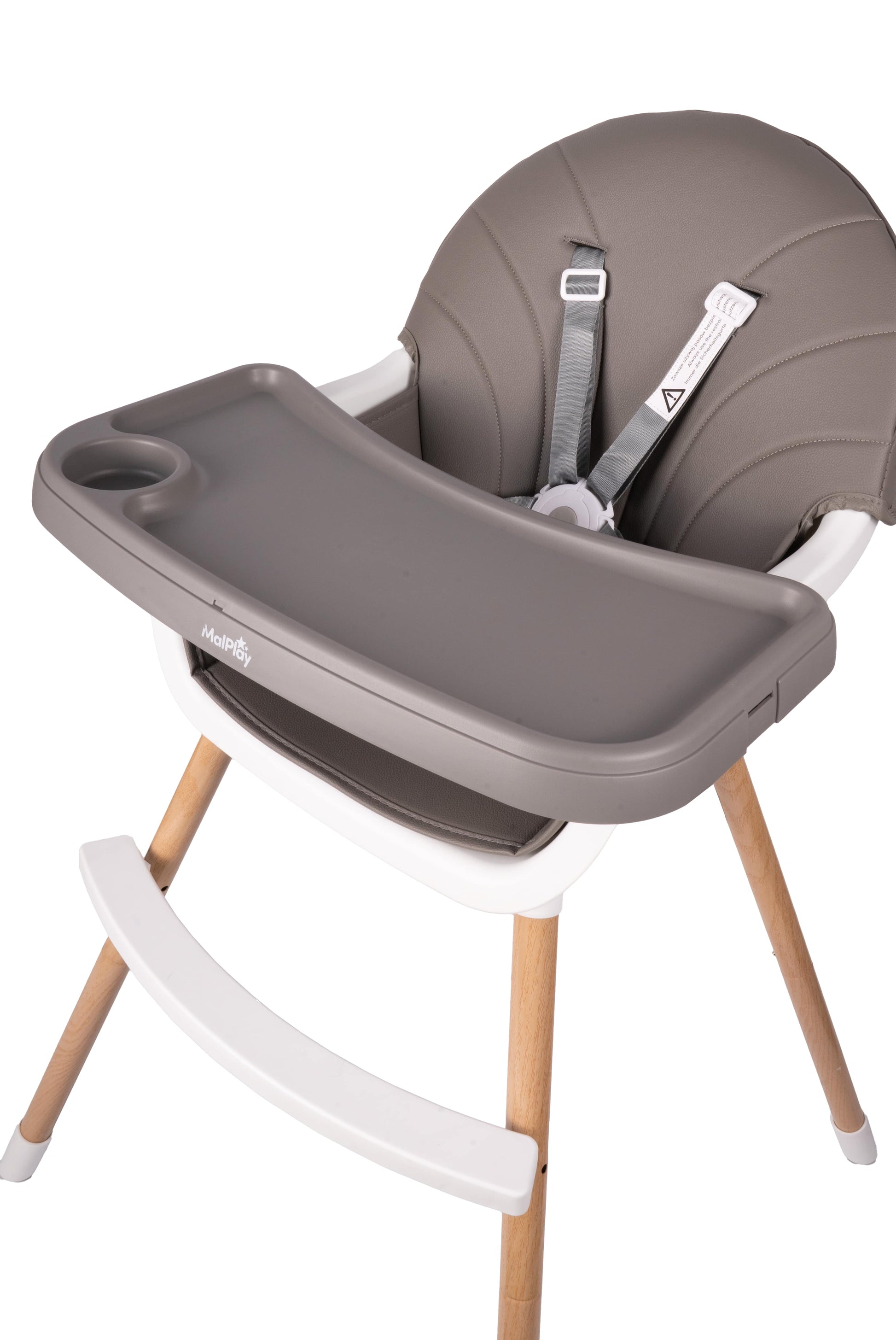 De geïntegreerde voetsteun, bevestigd tussen de voorpoten van de stoel, biedt het kind een natuurlijke ondersteuning voor de benen. Hierdoor kan de baby in een ergonomische houding zitten, wat zijn comfort en gevoel van veiligheid tijdens het eten of spelen ten goede komt.