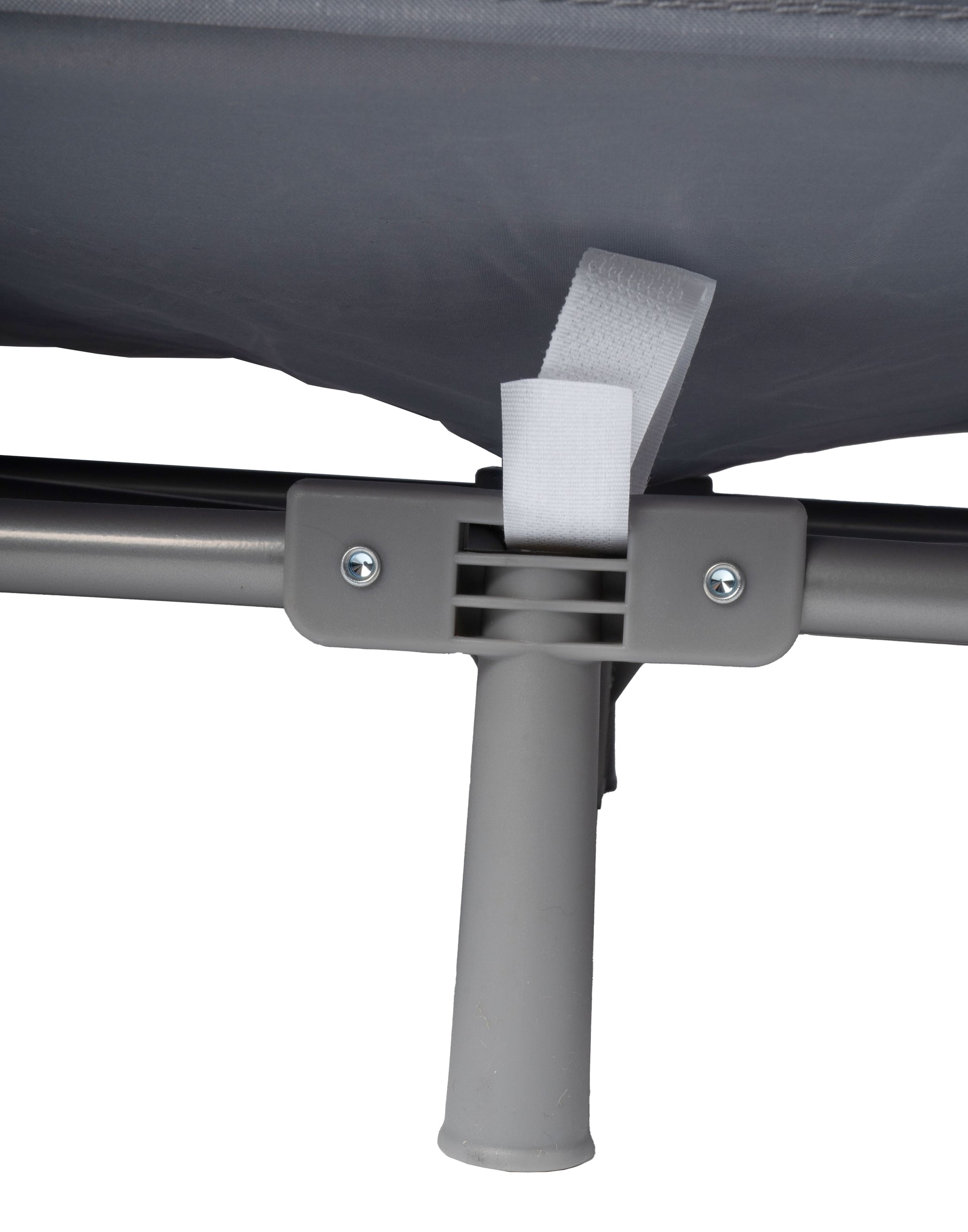 Het uitklap- en opvouwmechanisme van het LUNO-bedje is erg handig voor ouders. U hebt geen gereedschap of kracht nodig – met een paar eenvoudige handelingen is het bedje klaar voor gebruik. Dankzij de veiligheidssluiting kunt u er zeker van zijn dat het bedje tijdens het gebruik stabiel en veilig blijft.