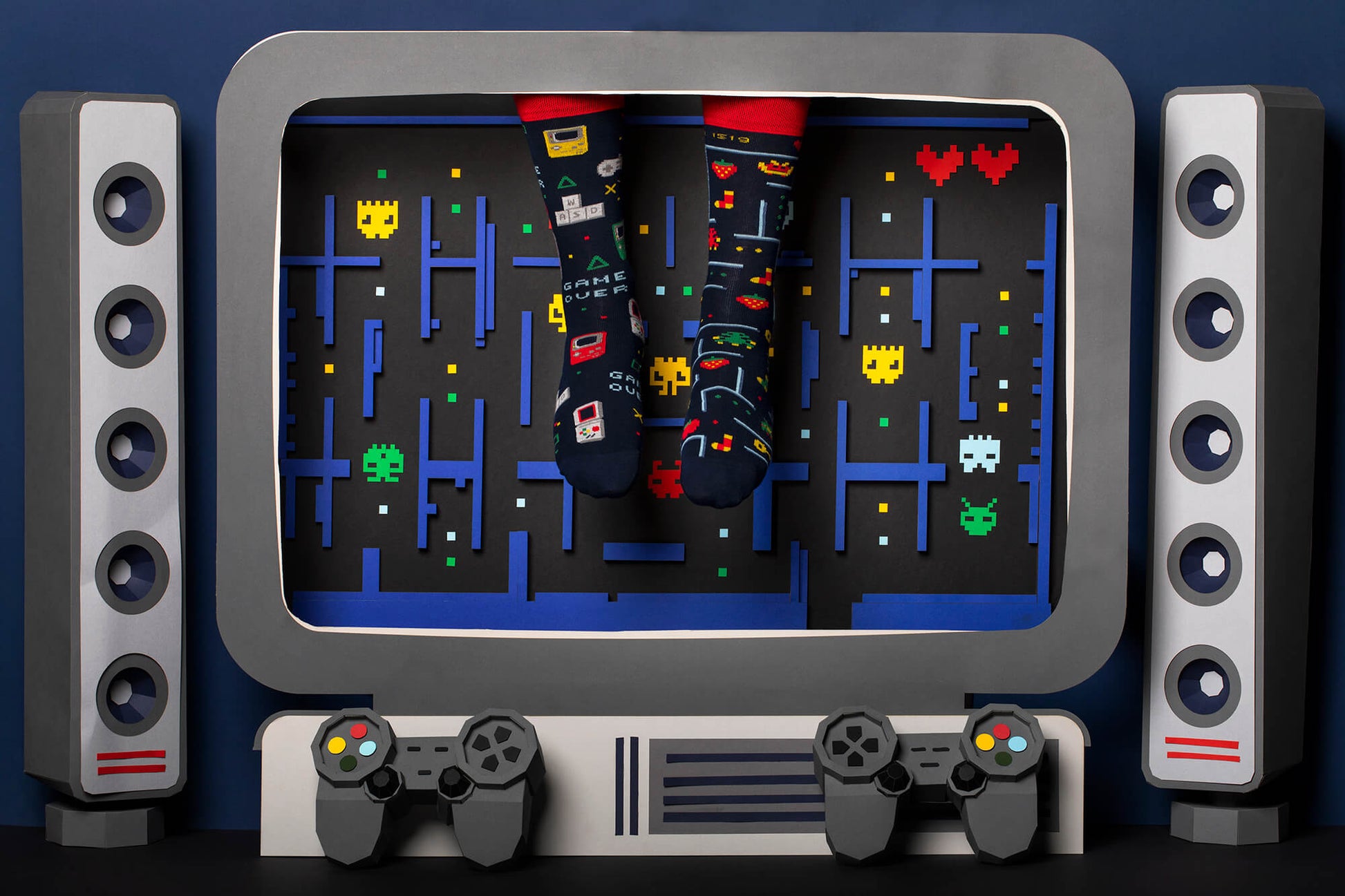 Het is tijd om je sokkengame te verbeteren met dit op Pacman geïnspireerde paar. Deze zijn perfect voor dragers met een passie voor gaming en een gezonde dosis nostalgie!
