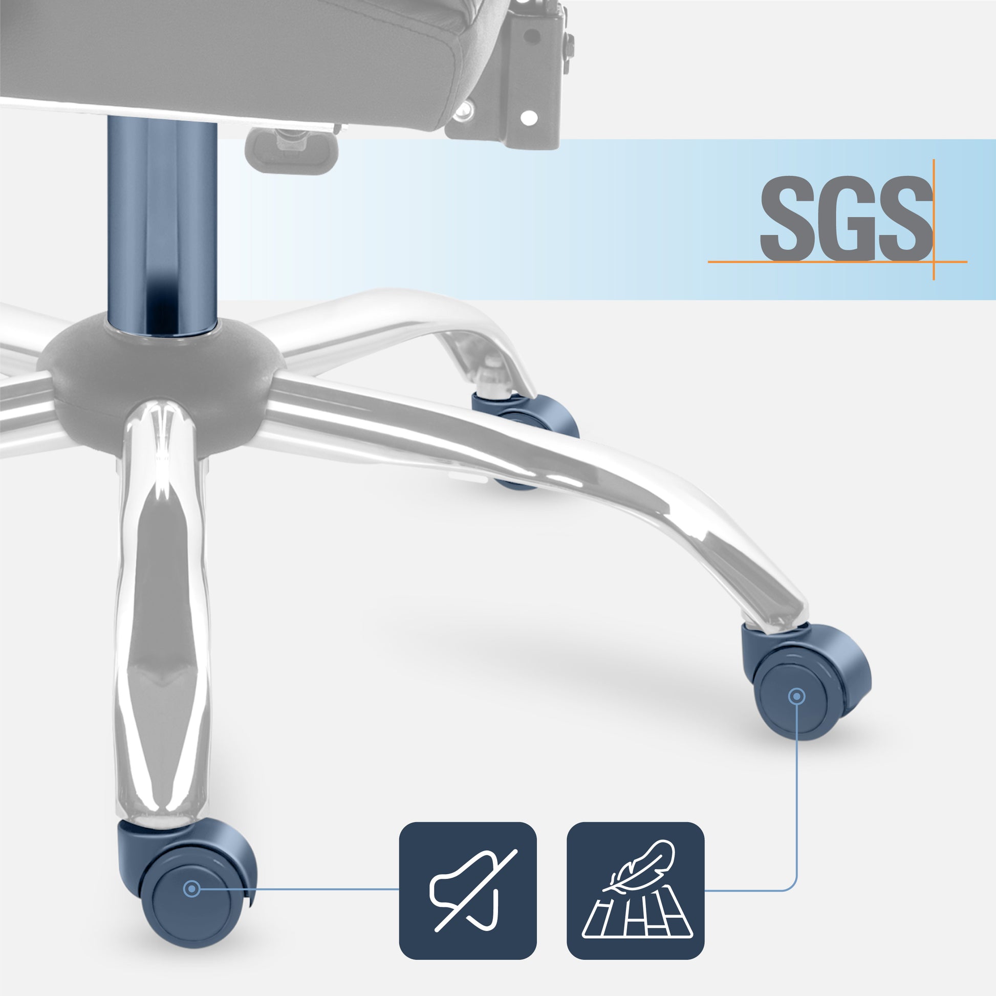 De uitklapbare voetensteun zorgt voor een verbeterde zithouding en helpt de bloedsomloop in de benen te verbeteren tijdens lange uren zitten.