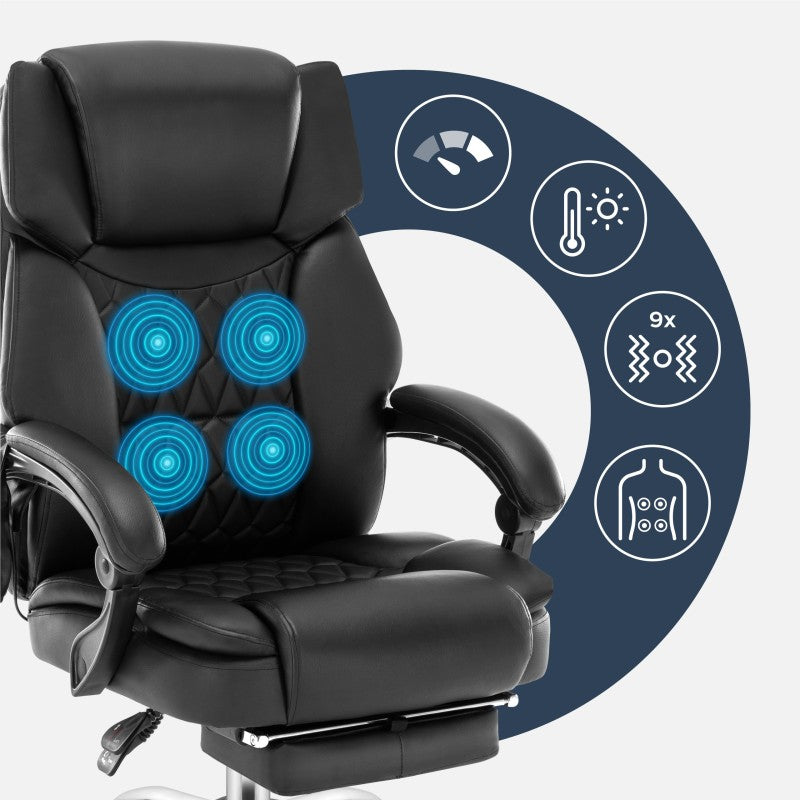 De stoel is uitgerust met een verwarmingsfunctie die helpt om de bloedcirculatie te bevorderen en de spieren te ontspannen.