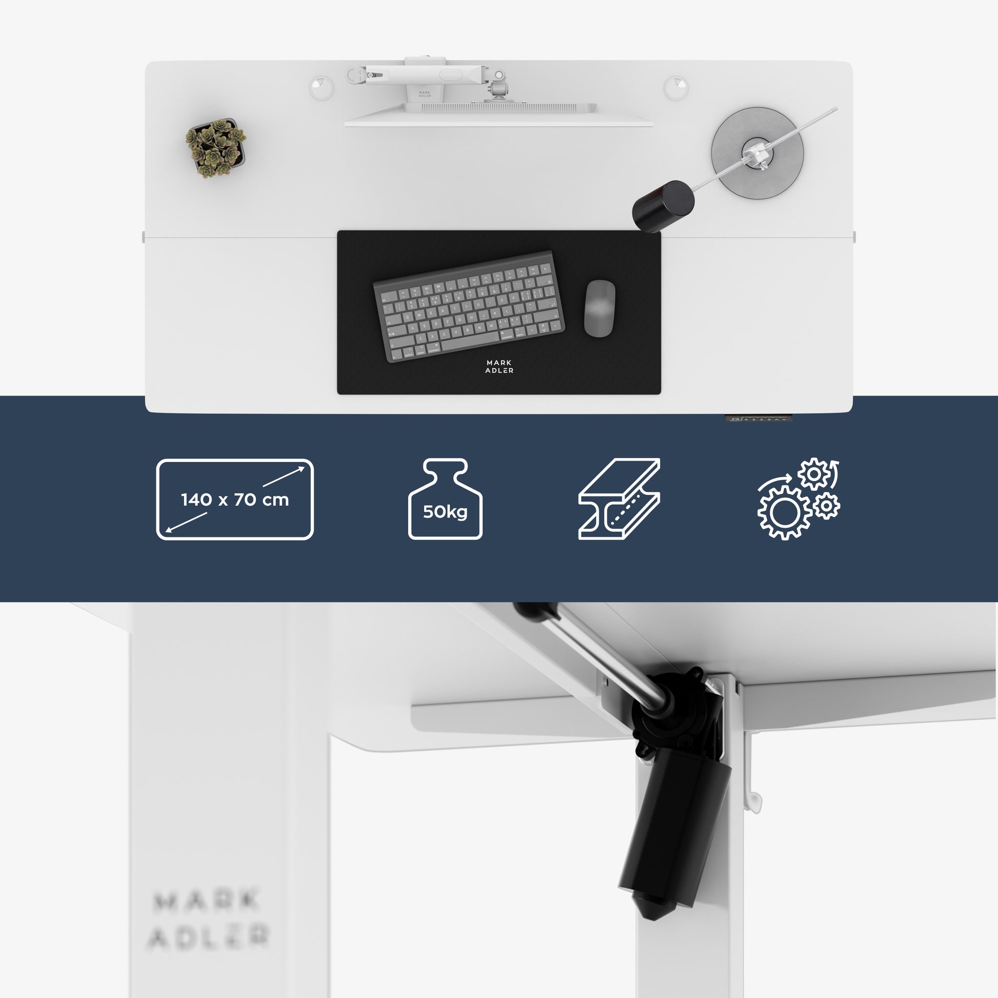 Mark Adler-Bureau-Leader 7.3-140x70 cm-Elektrisch verstelbaar-Wit