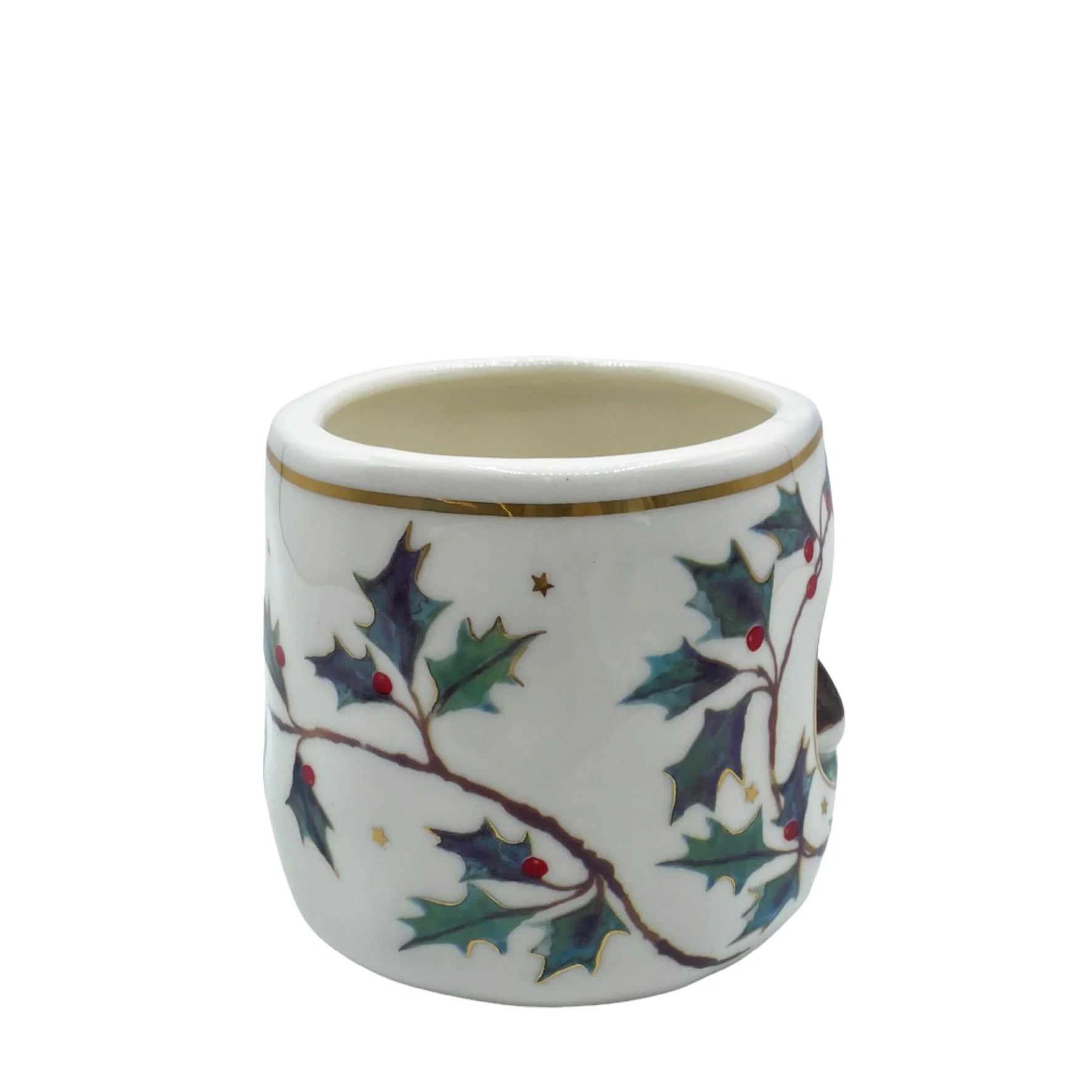 Kenmerken: Breng de charme van een winterse Engelse tuin in je ochtendroutine met dit schattige roodborstje. Tussen een aquarelillustratie van kronkelige hulstbladeren en bessen zit een lief 3D roodborstje van keramiek, knus in een hoekje. Op een crèmekleurige achtergrond en met een groen handvat is deze mok extra magisch gemaakt met goudkleurige folieaccenten op de bladeren en de rand. De mok zou een prachtige aanvulling zijn op een winterse tafelschikking en zal zeker een onmiddellijke favoriet zijn onder de gasten.