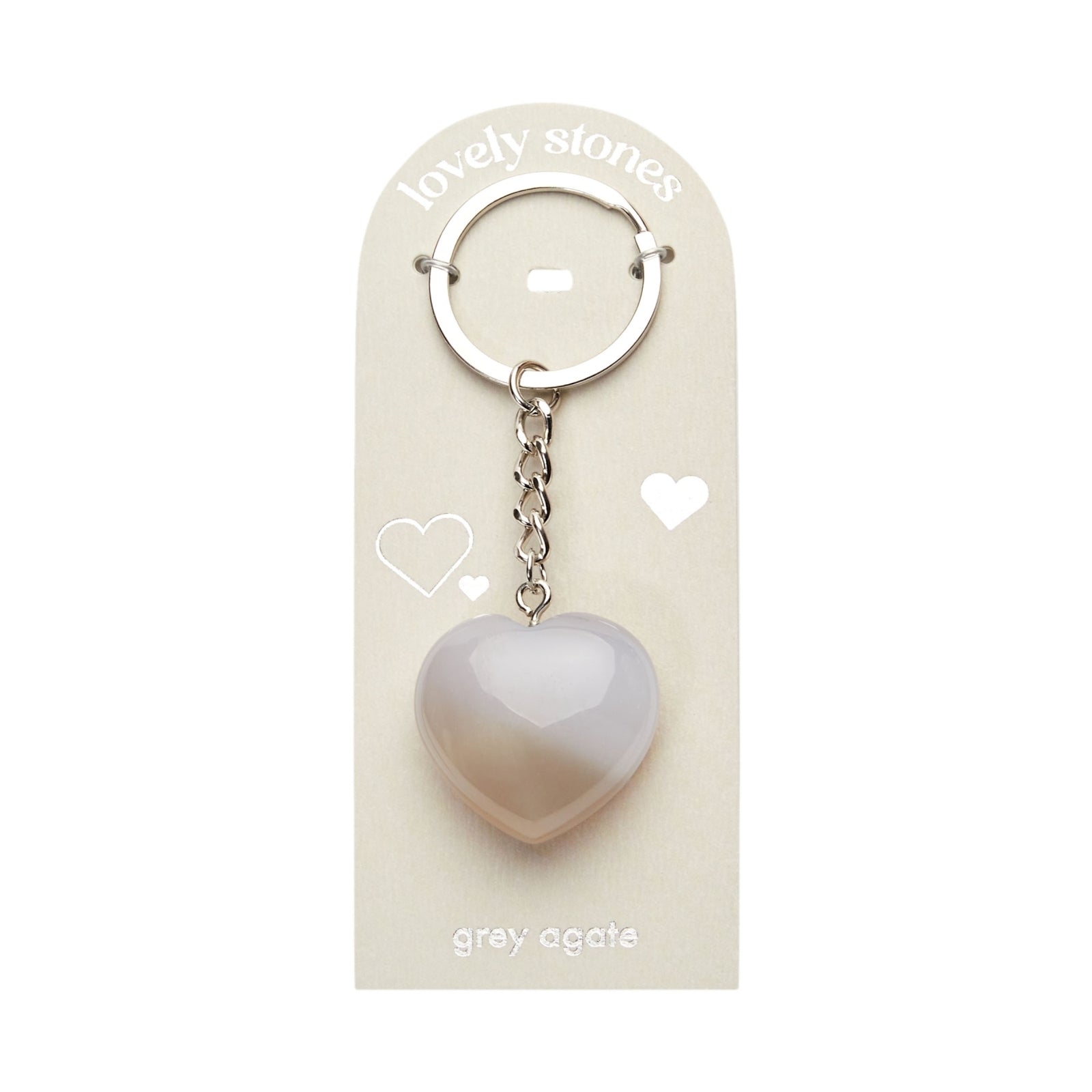 Lovely Stones unieke sleutelhanger met een echte stenen hartvormige hanger van grijze agaat.