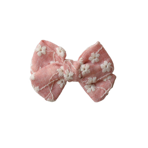 Kleine roze strik met borduursel - handgemaakte katoenen strik in latte kleur voor kinderen en vrouwen