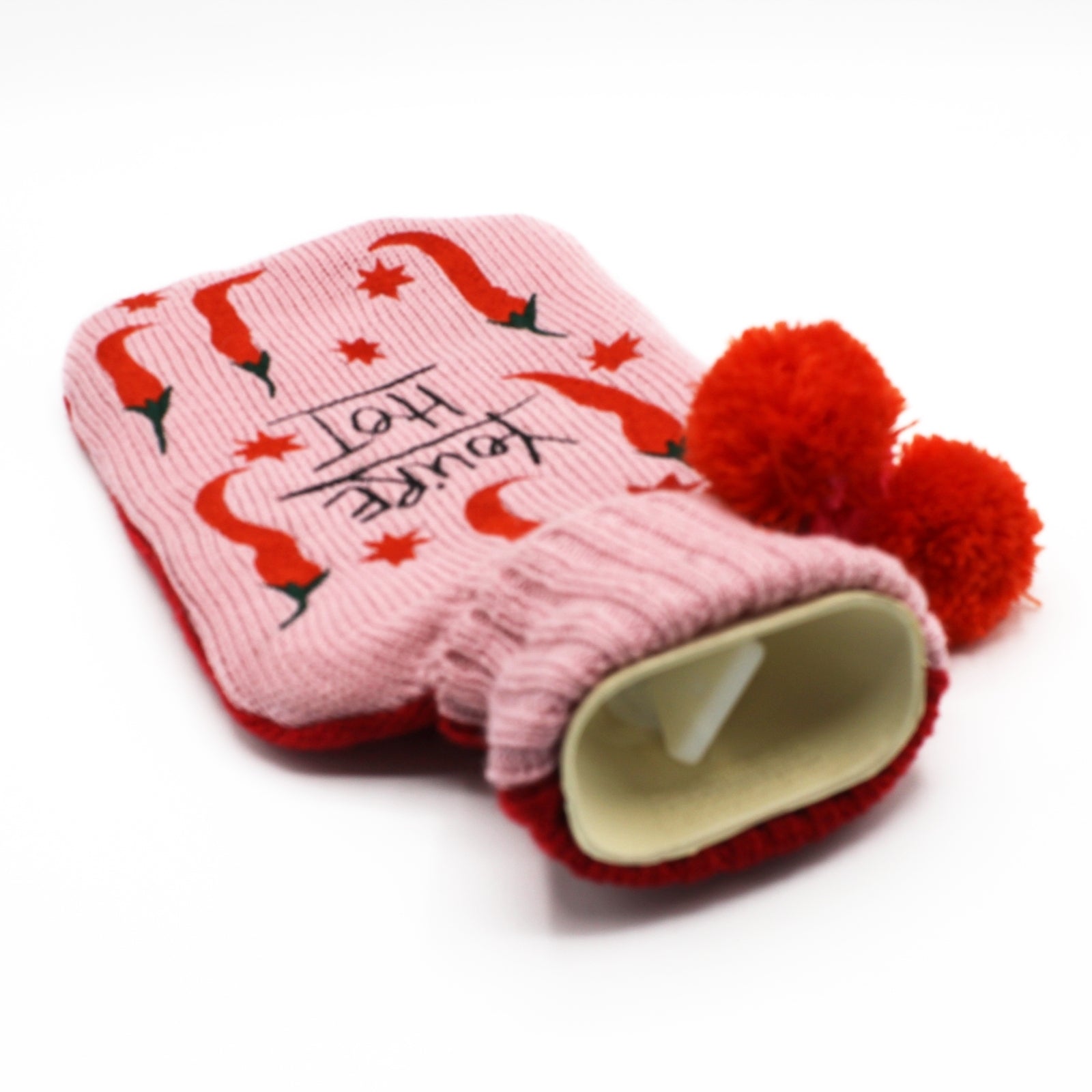 Kenmerken: Deze schattige kleine warmwaterkruik zal zeker de hitte brengen! Deze fles is opvallend roze en opvallend rood en is geborduurd met chilipepers en de woorden "You're Hot". Deze pittige fles houdt je warm tijdens gezellige avonden.