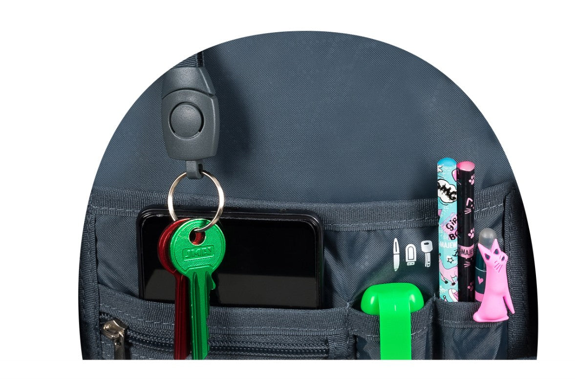 Het binnenvak met ritssluiting is een perfecte plek voor waardevolle spullen, zoals een portemonnee of telefoon, en de ingebouwde organizer met sleutelring helpt je om orde te houden en voorkomt dat je kleine spullen kwijtraakt.