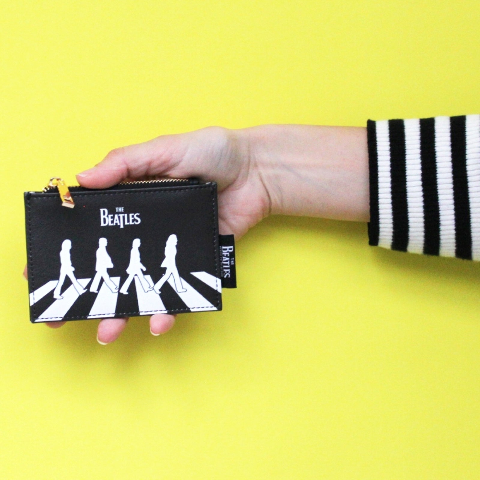 Kenmerken: Een slanke portemonnee met een iconisch silhouet van The Beatles die Abbey Road oversteken. Deze portemonnee met rits heeft 4 vakjes voor pasjes aan de achterkant, met een gestanste drumvorm en zwart-witte contrastkleuren om een knipoog te geven naar het iconische Abbey Road. Het perfecte accessoire voor fans van de Fab Four!