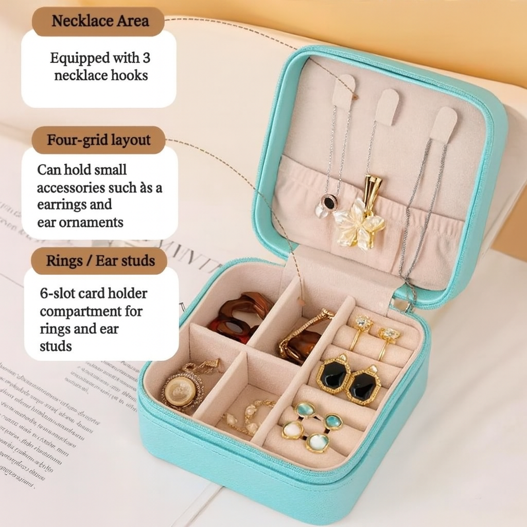 Sieradendoos met ritssluiting, perfect voor oorbellen, kettingen, ringen en meer;