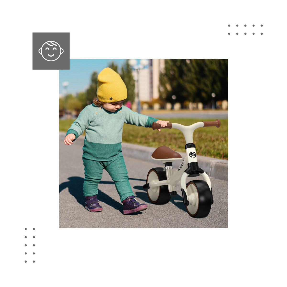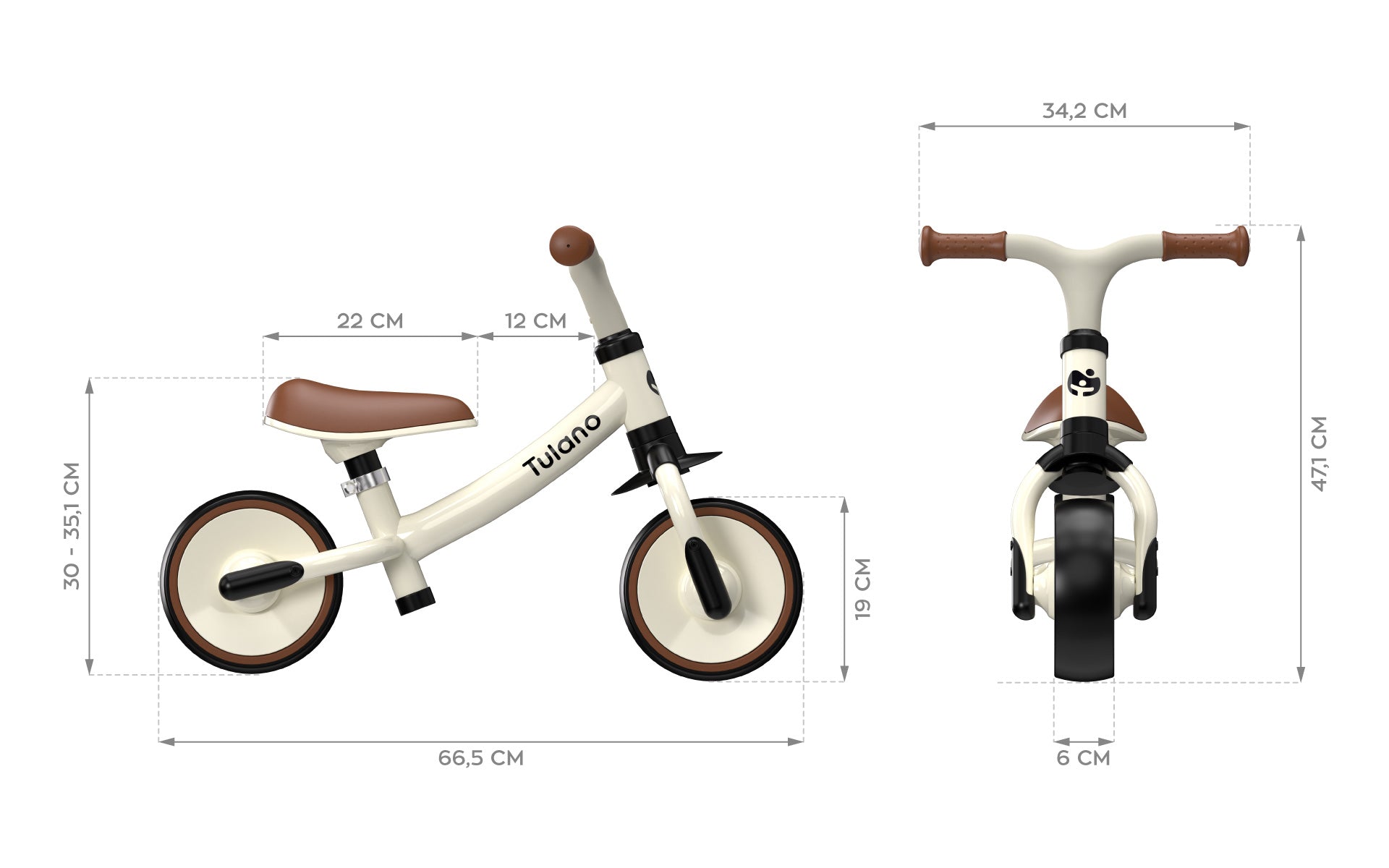 Door de zadelhoogte in te stellen van 23,5 cm tot 26 cm kun je de fiets eenvoudig aanpassen aan de lengte van een peuter van 18 tot 48 maanden. Hierdoor kan het kind de juiste houding aannemen tijdens het fietsen.