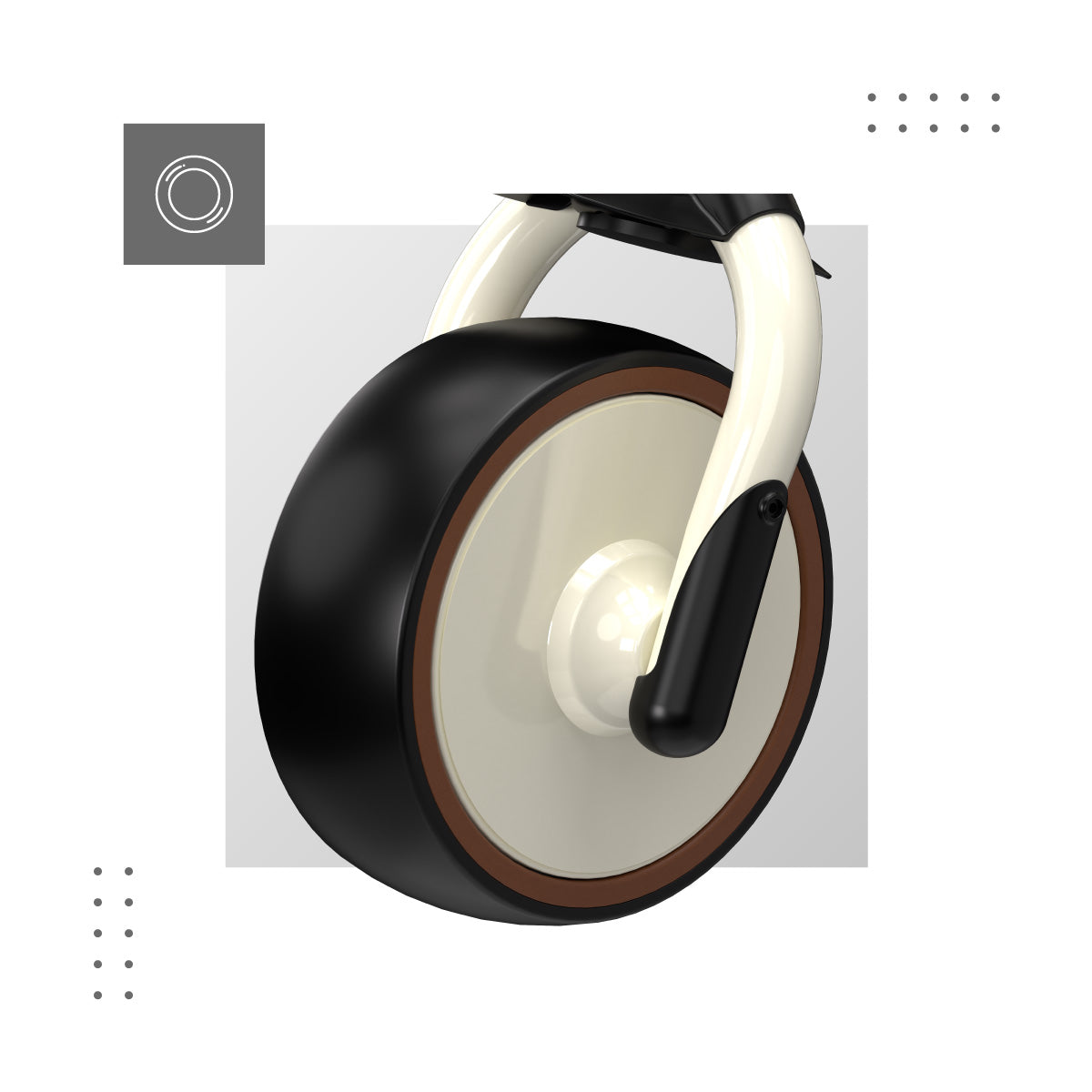 Scout 15 is uitgerust met bovengemiddeld brede banden, waardoor hij stabieler is dan andere modellen op de markt. Het gebruik van lichtgewicht Eva-schuim zorgt voor uitstekende grip op elk type ondergrond. De wielen hoeven niet te worden opgepompt en zijn lekbestendig.